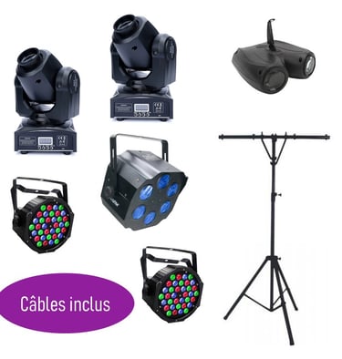 Inox Event Location vous propose son pack lumière 200, idéal pour vos événements publics dans des grands espaces comme des halles d’exposition ou des salles de spectacles. Il peut éclairer un espace allant jusqu’à 300m², soit 200 personnes. Ce qui complète la prestation de votre DJ ou groupe de musique lors de soirées étudiantes, concerts ou bals. Ce pack est composé de quatre pièces maîtresses et de deux projecteurs d’ambiance. Il se différencie par sa grande couverture et ses multiples effets lumineux. Une assistance technique téléphonique sera proposée durant la location. Plusieurs options sont disponibles pour compléter ce pack.