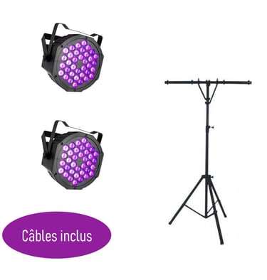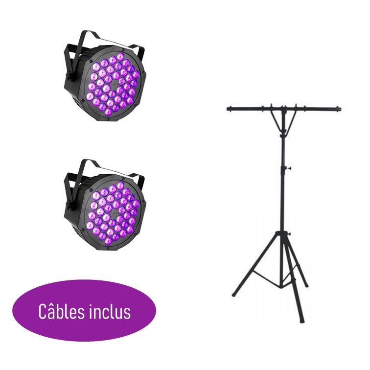 Inox Event Location vous propose son pack lumière noire 20, idéal pour vos petites soirées fluos en espace restreint. Il peut éclairer une surface allant jusqu’à 30m², soit 20 personnes. Ce qui convient parfaitement aux petites soirées entre amis et événements familiaux dans un salon. Ce pack vous permet d’apporter une lumière ultraviolette qui fait ressortir le blanc et les couleurs fluorescentes. Ce pack est composé de deux projecteurs de lumière noire UV. Il se caractérise par sa grande simplicité d’utilisation et de transport. Une assistance technique téléphonique sera proposée durant la location. Plusieurs options sont disponibles pour compléter ce pack.