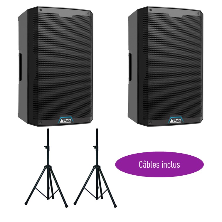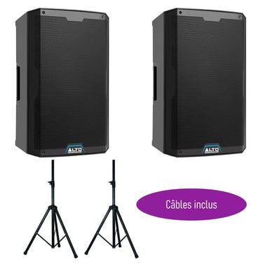 Inox Event Location vous propose son pack sono 120 pro, idéal pour vos événements publics dans des espaces moyens comme des salles de fêtes ou des petits espaces extérieurs. Ce set délivre 2000 watts RMS de puissance, il peut sonoriser un espace allant jusqu’à 150m², soit 120 personnes. Ce pack est composé de 2 enceintes amplifiées large bande Alto Professional TS415. Equipées d’une membrane de 15’ et d’un driver en céramique avec bobine de 1.4’, ces enceintes délivrent une qualité d’aigus et de medium impressionnante, offrant une réponse en fréquence de 44Hz à 20 kHz et un SPL max de 132 dB. Ce pack permet une restitution riche et précise des aigus et des mediums. Ce pack est idéal pour les concerts et la sonorisation d’instruments. Plusieurs options sont disponibles pour compléter ce pack.