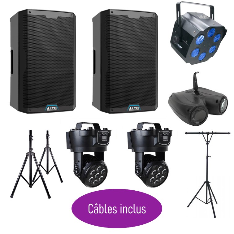 Inox Event Location vous propose son pack sono et lumière 120 pro, idéal pour les concerts et les événements publics dans de petits espaces comme des halles d’exposition ou des salles de spectacles. C’est la solution complète pour sonoriser et éclairer un espace allant jusqu’à 150m², soit 120 personnes. Ce pack est composé de 4 jeux de lumière et 2 enceintes amplifiées large bande Alto Professional TS415. Equipées d’une membrane de 15’ et d’un driver en céramique avec bobine de 1.4’, ces enceintes délivrent une qualité d’aigus et de medium impressionnante, offrant une réponse en fréquence de 44Hz à 20 kHz et un SPL max de 132 dB. Ce pack permet une restitution riche et précise des aigus et des mediums. Ce pack est idéal pour les concerts et la sonorisation d’instruments. Plusieurs options sont disponibles pour compléter ce pack.