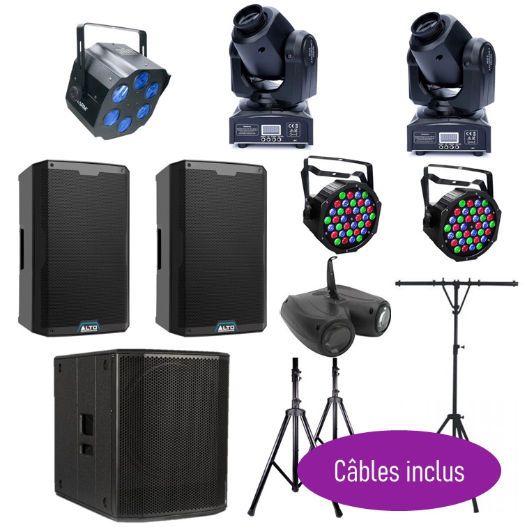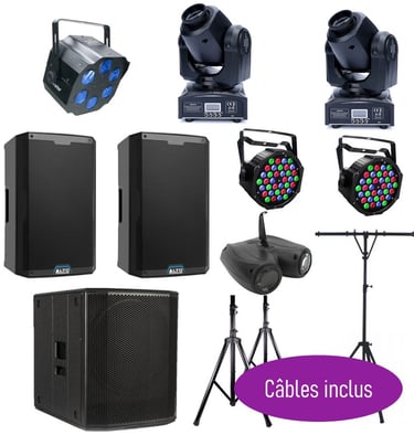 Inox Event Location vous propose son pack sono et lumière 200 pro, idéal pour les concerts et les événements publics dans des espaces moyens comme des halles d’exposition ou des salles de spectacles. C’est la solution complète pour sonoriser et éclairer un espace allant jusqu’à 250m², soit 200 personnes. Ce pack est composé 6 jeux de lumière, 2 enceintes amplifiées large bande Alto Professional TS415 et d’un caisson actif DB sub 618. Equipées d’une membrane de 15’ et d’un driver en céramique avec bobine de 1.4’, ces enceintes délivrent une qualité d’aigus et de medium impressionnante. Complété par un caisson de 18’, ce pack offre une réponse en fréquence de 35Hz à 20 kHz et un SPL max de 133 dB. Ce pack permet une restitution riche et précise des aigus et des mediums. Ce pack est idéal pour les concerts et la sonorisation d’instruments. Plusieurs options sont disponibles pour compléter ce pack.