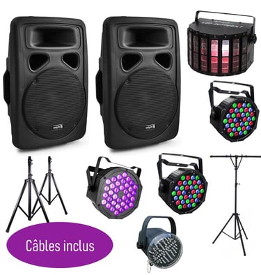 Inox Event Location vous propose son pack sono et lumière 50, idéal pour vos grands événements privés, en extérieur ou en salle des fêtes. C’est la solution complète pour sonoriser et éclairer un espace allant jusqu’à 80m², soit 50 personnes. Ce qui convient parfaitement aux anniversaires, baptêmes, DJ show dans un bar, cafés-concerts et évènements d'entreprises. Ce pack est composé de deux enceintes amplifiées et de quatre jeux de lumière. Il se différencie par sa puissance tout en restant compacte. Une assistance technique téléphonique sera proposée durant la location. Plusieurs options sont disponibles pour compléter ce pack.