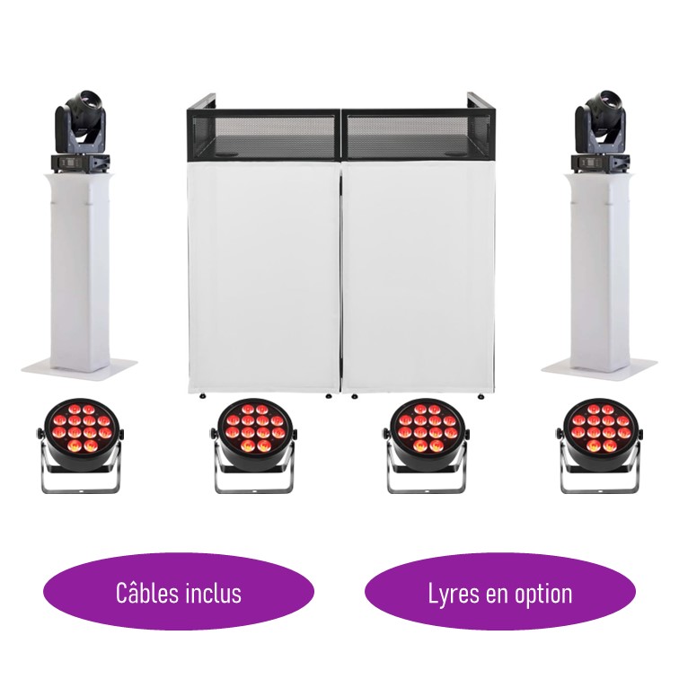Le pack DJ Booth Classic White est une solution clé en main, évolutive et professionnelle, idéale pour les DJ souhaitant proposer une prestation soignée et cohérente, tout en renforçant leur présence scénique.